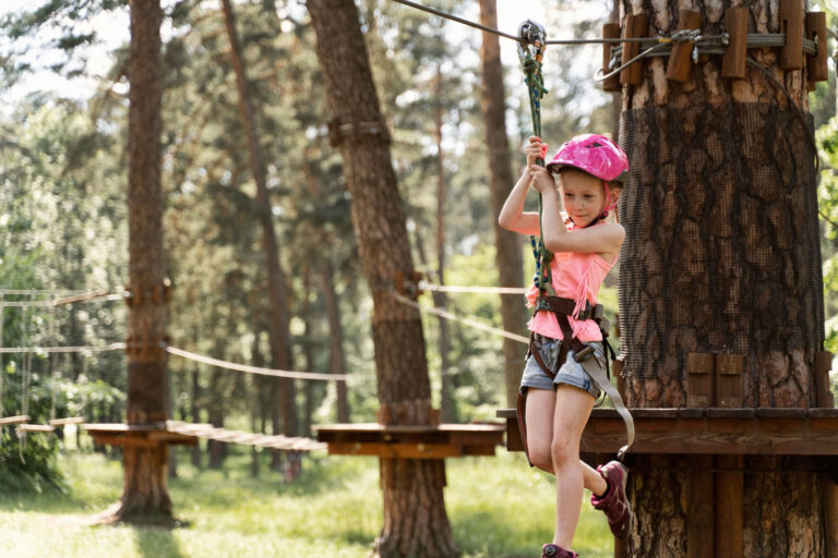 Whether you’re a beginner or an expert, test your strength, balance and encourage as you venture on a wild treetop adventure.